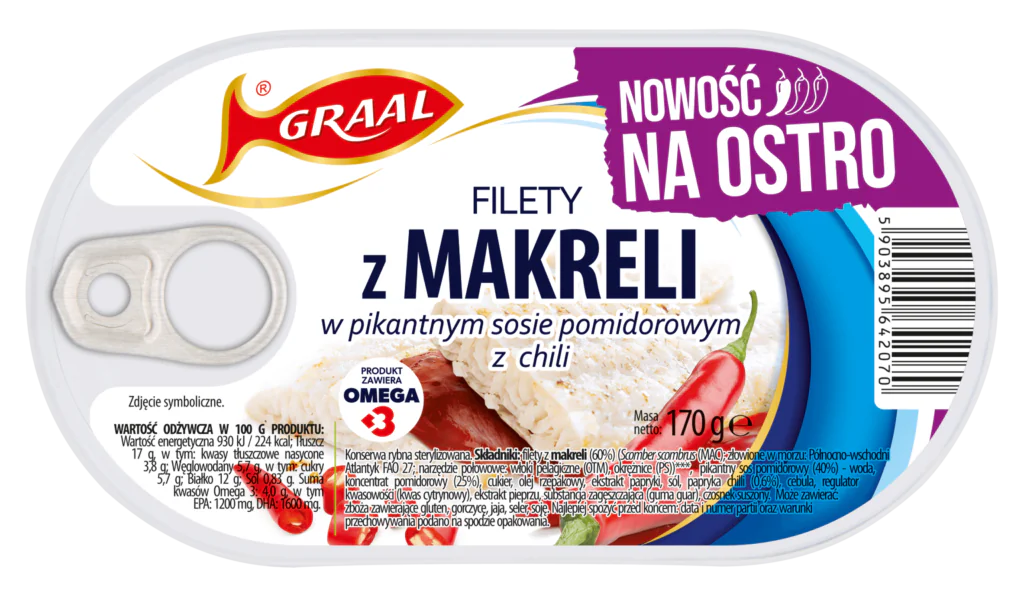 Graal > Nowości > Filety z makreli w pikantnym sosie pomidorowym z chilli